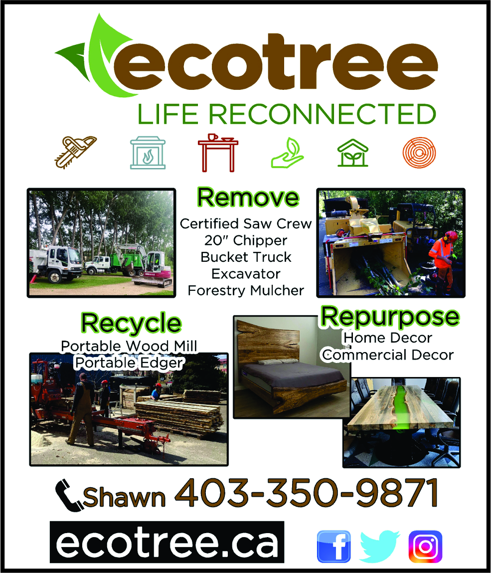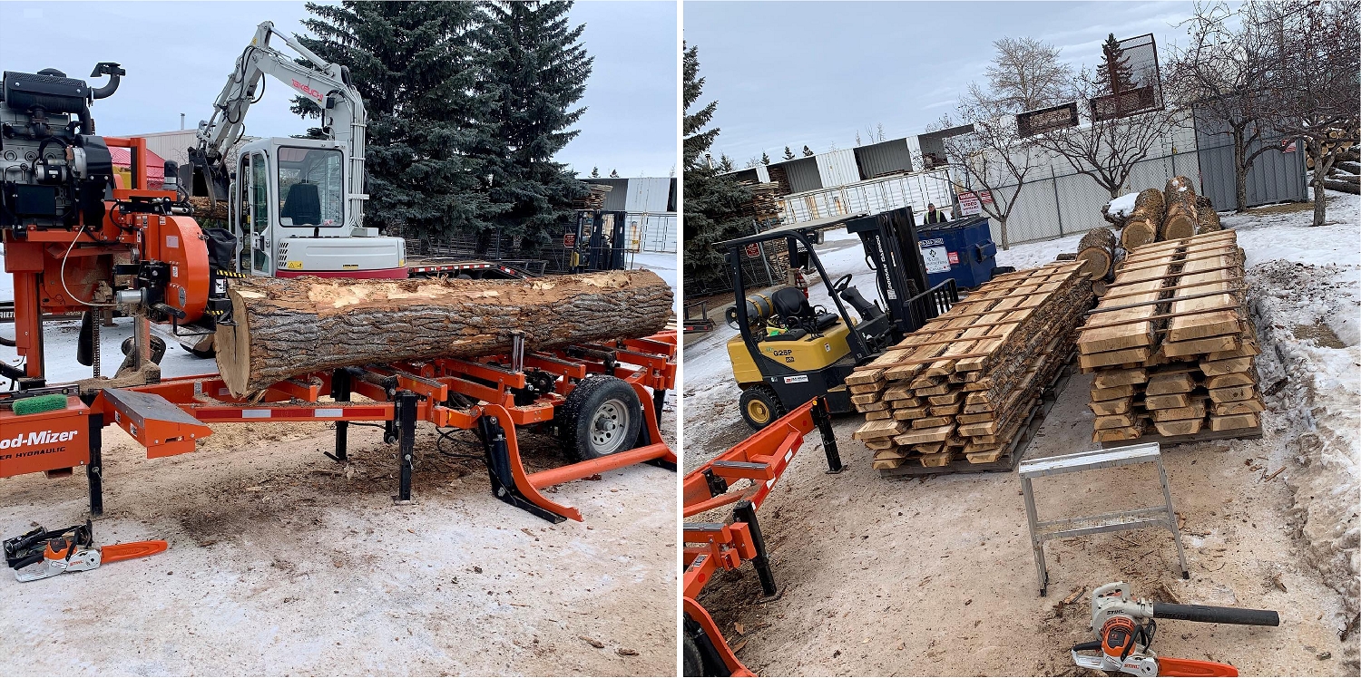 Our Urban Forest Management “4R” approach recycles, repurposes, replants and rebuilds, using raw materials from urban logging to create beautiful live-edge décor, legacy furnishings and commercial grade building materials that go right back into the community. We are full-service tree care facility with onsite equipment to process local wood species into commercial-grade products. Our Tree Services Red Deer | Eco Tree Services Ltd facility features the city’s first wood-fired boiler that converts waste material into heat for our shop and for our kiln as well.