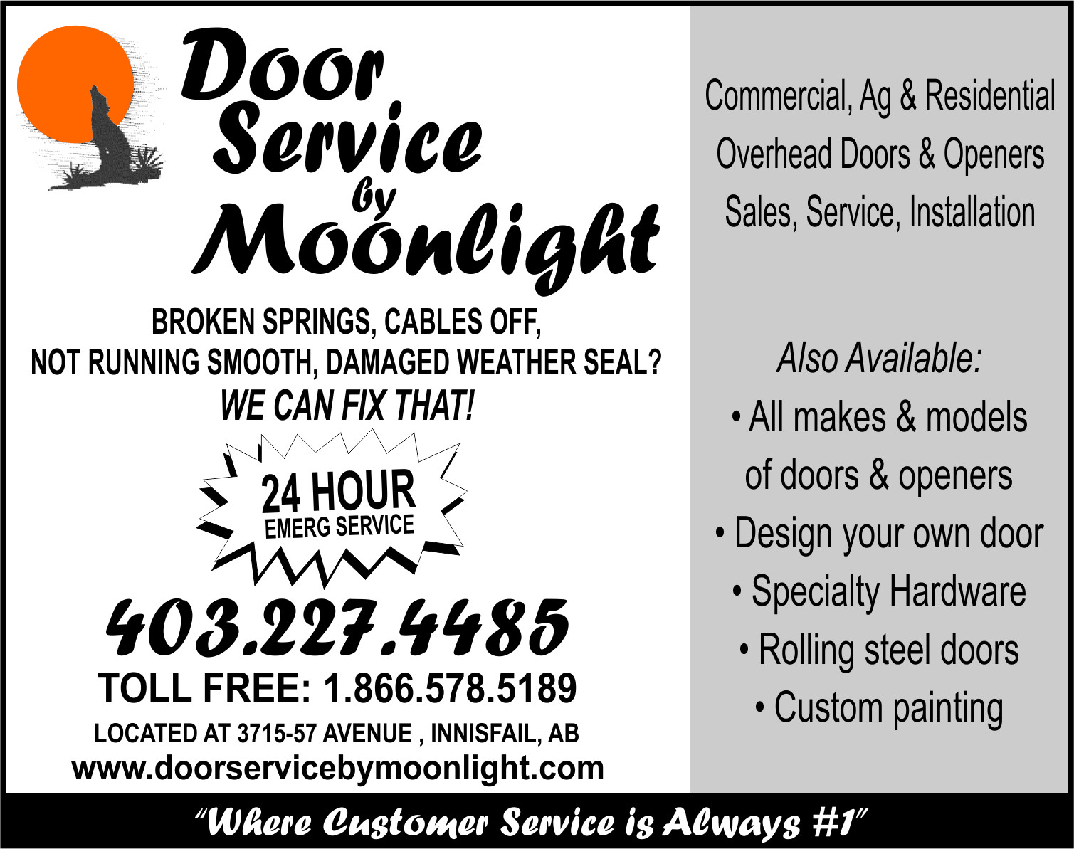 Door Service by Moonlight Ltd. has been proudly serving Central Alberta for years. We Sell, Service and Install ALL makes and models of Overhead Doors and Openers. Your overhead door is the first visual impact and the largest moving component of your home, so good quality and annual maintenance are key to keeping your overhead door looking and running at its best. Our knowledgeable technichians is all your overhead door needs to be operational again, to keep the heat in and the cold out!